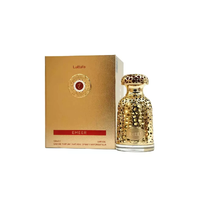Emeer de Lattafa Perfumes es una fragancia de la familia olfativa Amaderada Aromática para Hombres y Mujeres. Esta fragrancia es nueva. Emeer se lanzó en 2024. Las Notas de Salida son limón (lima ácida), bergamota, esclarea y bayas de enebro; las Notas de Corazón son té Blanco, sándalo, cardamomo y incienso de olíbano (franquincienso); las Notas de Fondo son ámbar gris, cedro, cachemira y pachulí.