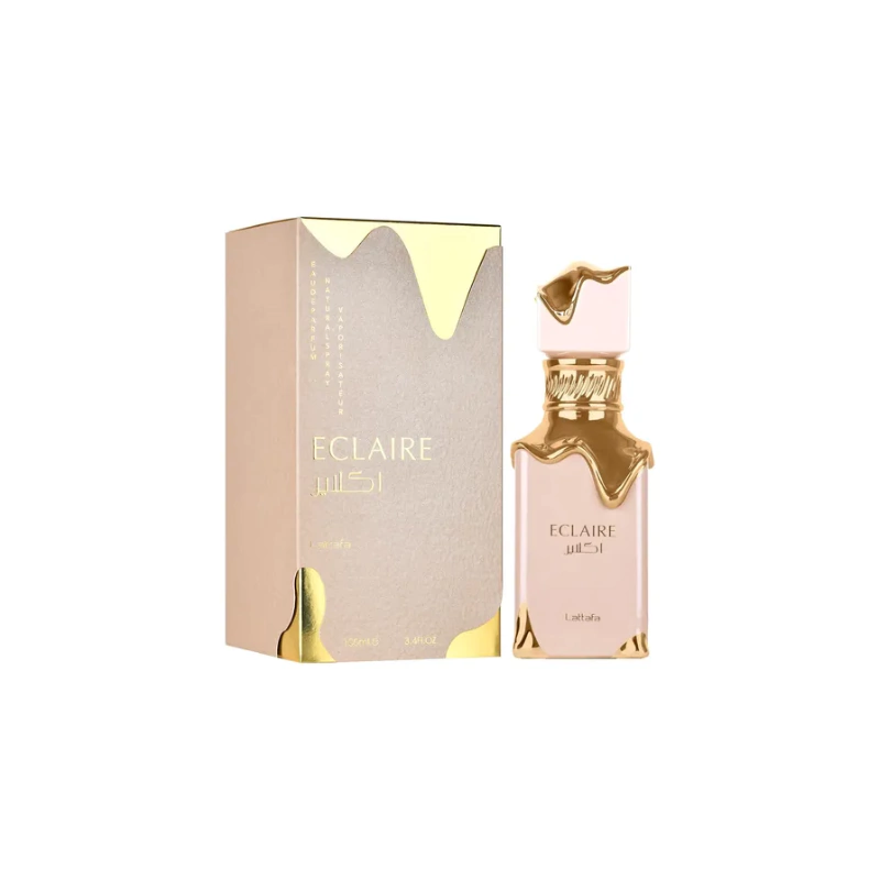 Eclaire de Lattafa Perfumes es una fragancia de la familia olfativa Floral Frutal Gourmand para Mujeres. Esta fragrancia es nueva. Eclaire se lanzó en 2024. Las Notas de Salida son caramelo, leche y azúcar; las Notas de Corazón son miel y flores blancas; las Notas de Fondo son vainilla, praliné y almizcle.