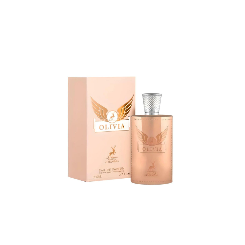 Olivia de Maison Alhambra es una fragancia de la familia olfativa Almizcle Floral Amaderado para Mujeres. Esta fragrancia es nueva. Olivia se lanzó en 2023. Las Notas de Salida son jazmín, mandarina, jengibre y azucena; las Notas de Corazón son sal y vainilla; las Notas de Fondo son ámbar gris y sándalo.