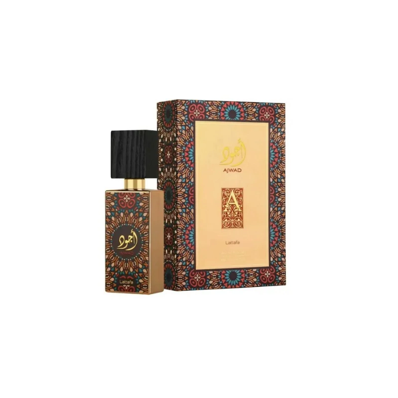 Ajwad de Lattafa Perfumes es una fragancia de la familia olfativa Amaderada Aromática para Hombres y Mujeres. Ajwad se lanzó en 2021. La Nota de Salida es notas afrutadas; las Notas de Corazón son rosa y jazmín; las Notas de Fondo son vainilla, almizcle, ámbar y cedro.