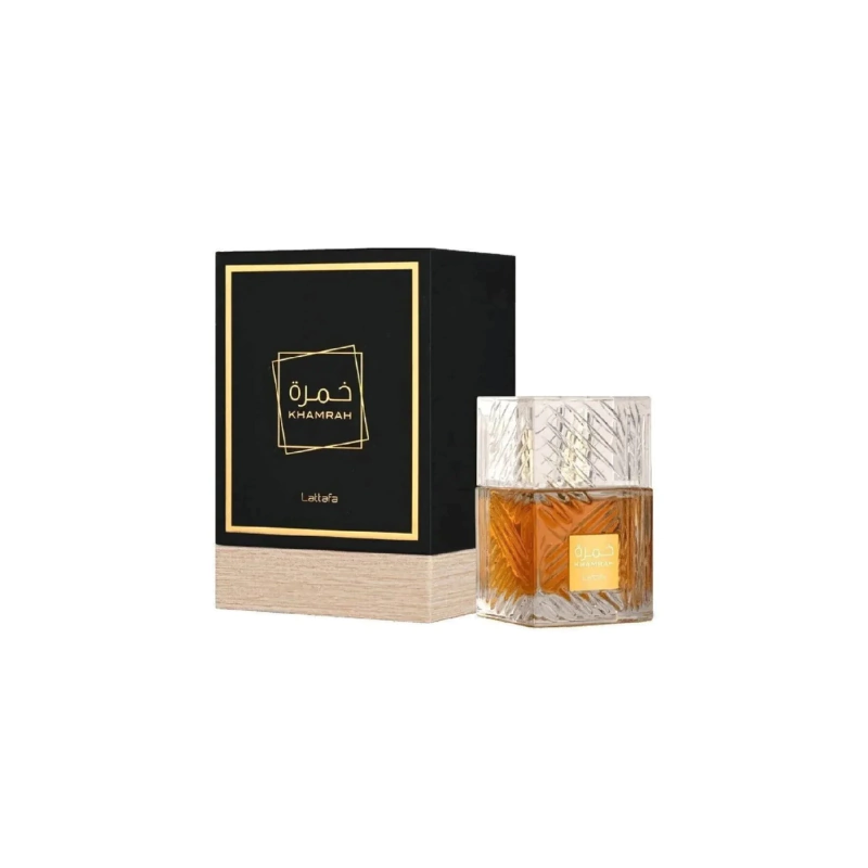 Khamrah de Lattafa Perfumes es una fragancia de la familia olfativa Oriental Especiada para Hombres y Mujeres. Esta fragrancia es nueva. Khamrah se lanzó en 2022. Las Notas de Salida son canela, nuez moscada y bergamota; las Notas de Corazón son dátiles, praliné, nardos y Mahonial; las Notas de Fondo son vainilla, haba tonka, Amberwood, mirra, benjuí y Akigalawood.